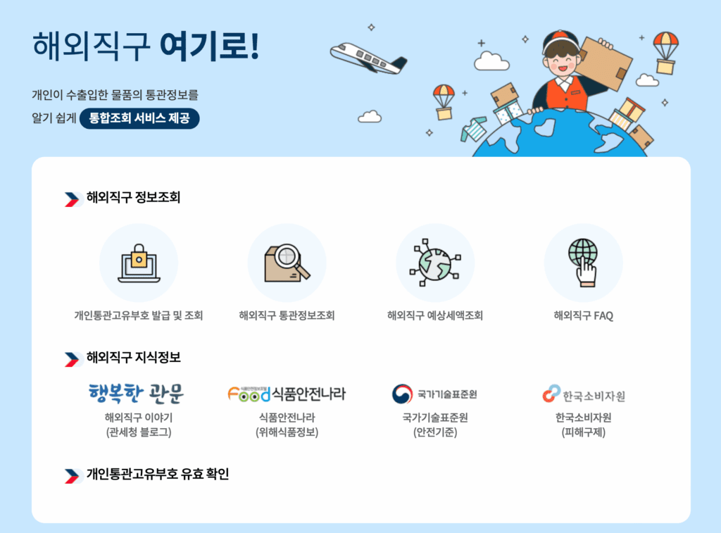 관세청 '해외직구 여기로' 서비스에서는 개인이 수출입한 물품의 통관 정보를 실시간으로 제공하고 있어요. 발급받은 개인통관고유부호를 활용해서 내 물품의 통관 현황도 조회해볼 수 있으니, 아주 유용하죠!