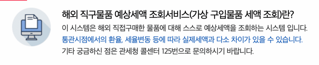 해외 직구 물품의 예상 세액은 개인통관고유부호와 마찬가지로 관세청 통합조회 서비스에서 조회할 수 있어요. 아마존에서 물품 구매 전에 예상 세액을 조회해서 예상치 못한 비용이 발생하지 않도록 미리미리 확인하는 습관을 들이는 것이 좋겠죠!